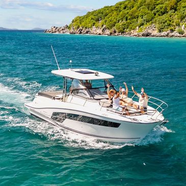 With her twin 425 horsepower engines, and comfortable seating for up to 6 passengers, during a 5-hour tour Twins Up will allow you to explore the most beautiful beaches, and go on a snorkel tour of the clearest waters, arrive in style at tropical hot spots, and/or find that relaxing and sublime one particular harbor that will keep calling you back to the islands!