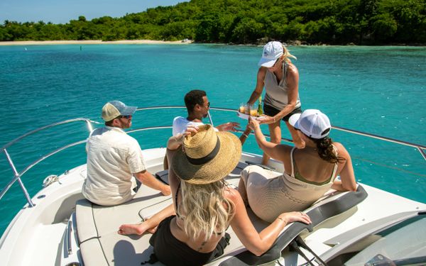 2 Hours. Maximum 6 Guests. Price Includes Prosecco & Accoutrements. Pickup in Crown Bay Marina. (Add $250 for Sapphire Marina Pickup.