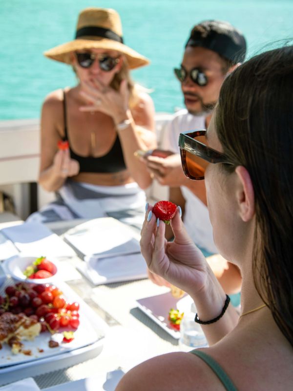 6 Hours. Maximum 6 Guests. Price Includes All Amenities, Beverages & Charcuterie. Optional Perfect Lunch Grilled Aboard, Add $40 per person.